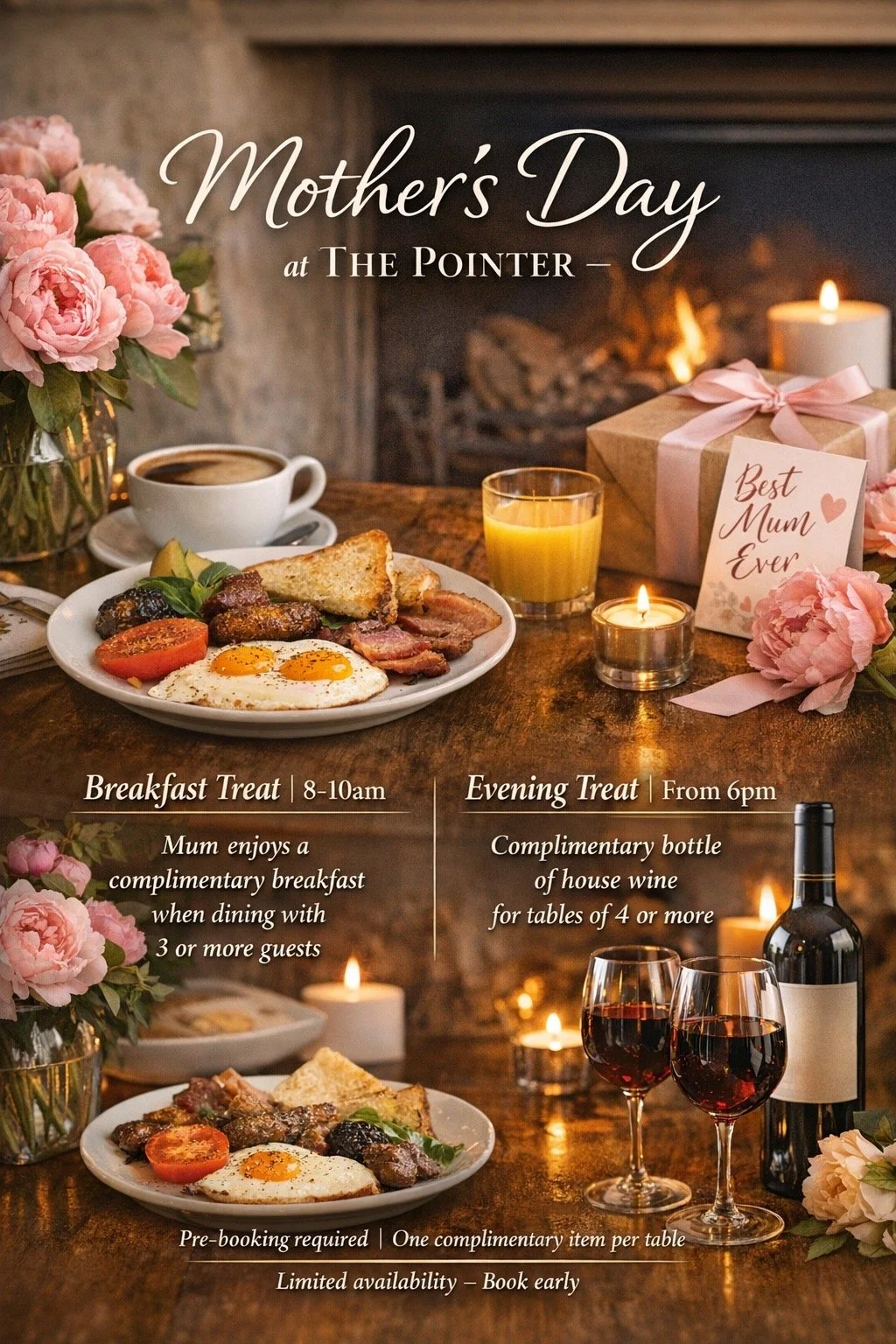 Joining us for dinner? Mum will receive a complimentary bottle of wine to share with the table — the perfect way to toast to everything she does.